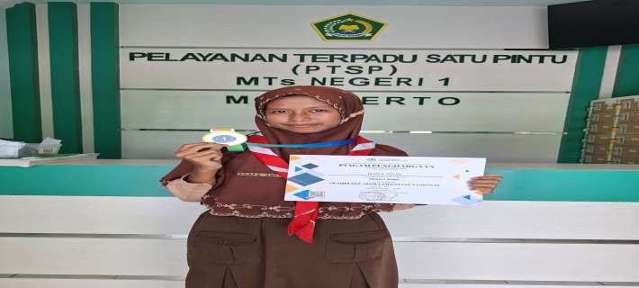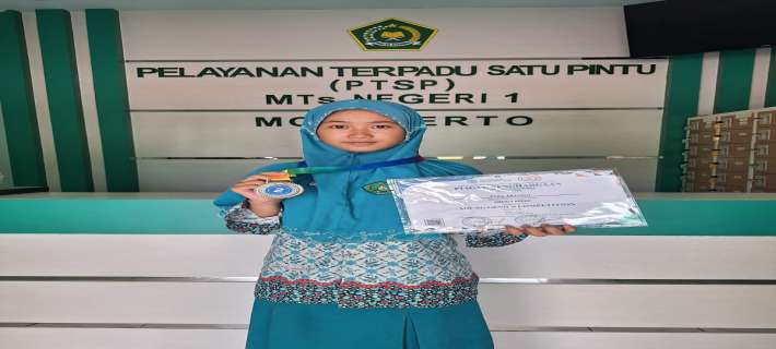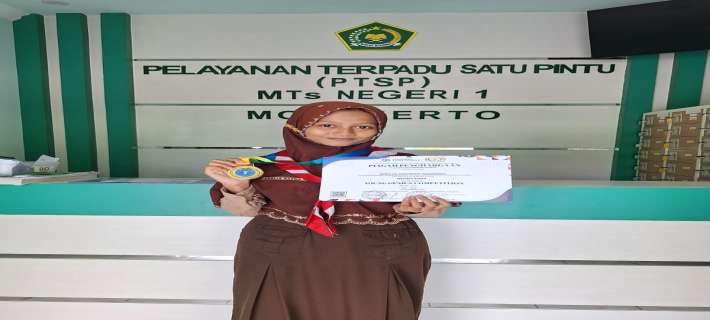 Kab. Mojokerto (MTsN 1) – Siswi MTsN 1 Mojokerto raih prestasi pada Rabu (20/11/2024) dalam kegiatan Young Genius Competition yang diadakan pada tanggal 20 Oktober 2024 oleh Olimpiade Sains Pelajar