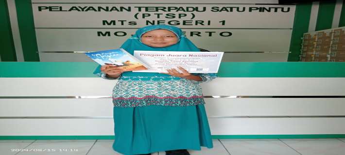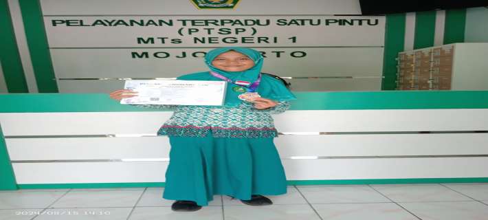 Kab. Mojokerto (MTsN 1) – Kamis, (16/8/2024) Siswi MTsN 1 Mojokerto bernama Nayyifa Tifani Agustina menerima penghargaan dari Penerbit Resmi Perpus Nasional. Penghargaan tersebut di berikan atas hasil karyanya dalam...