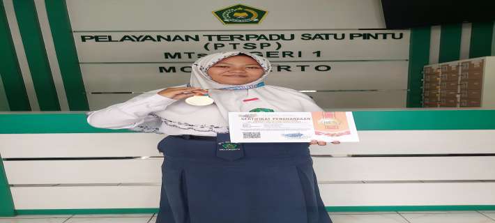 Kab. Mojokerto (MTsN 1) – Selasa, (13/8) tahun 2024 siswi MTsN 1, Mojokerto, Mutia Aulia Az Zahra berhasil meraih prestasi membanggakan dengan mendapatkan medali perunggu dalam Kompetisi Olimpiade Sains Quartal...
