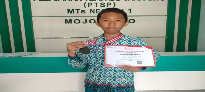 Kab. Mojokerto (MTsN 1 Mojokerto) – Prestasi emas kembali diukir peserta didik MTsN 1 Mojokerto dalam ajang Olimpiade Sains Tingkat Nasional yang diselenggarakan oleh Yayasan Berlian Hati Mulia. Yoga Septian...