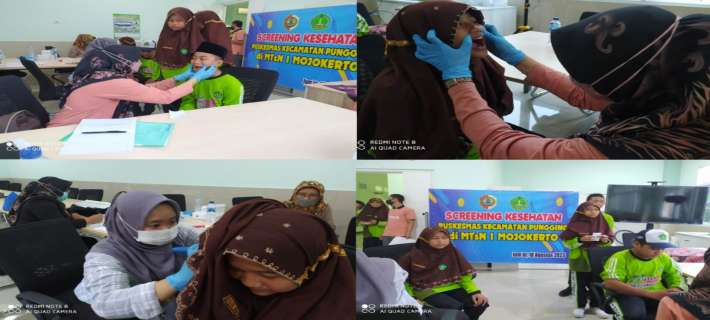 Kab. Mojokerto Jatim (MTsN 1 Mojokerto). Berdasarkan program madrasah, UKS MTsN 1 Mojokerto bermitra dengan tim kesehatan (Timkes) Puskesmas Pungging. Kegiatan berupa screening kesehatan. Meliputi pemeriksaan mata, telinga, gigi &...