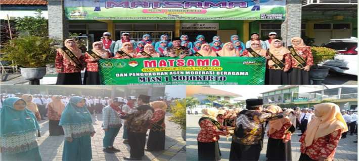 Kab. Mojokerto Jatim, (MTsN 1 Mojokerto). Pada Jumat, (21/7) tahun 2023, setelah kegiatan apel penutupan Masa Ta’aruf Siswa Madrasah (Matsama) MTsN 1 Mojokerto dilanjutkan pengukuhan kader dan duta Moderasi Beragama....