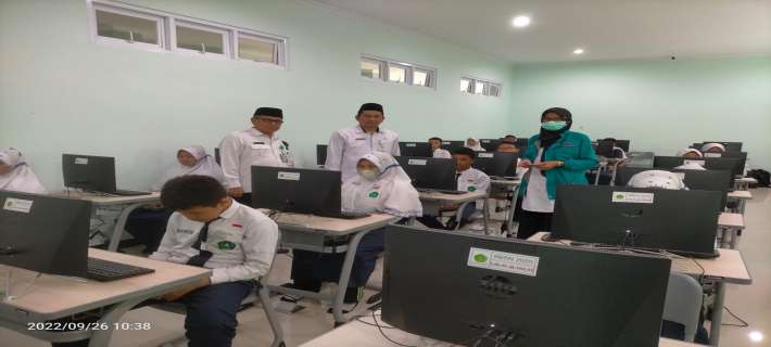 mengikuti ANBK. Terbagi dalam tiga ruang. Dilakukan pada sesi...