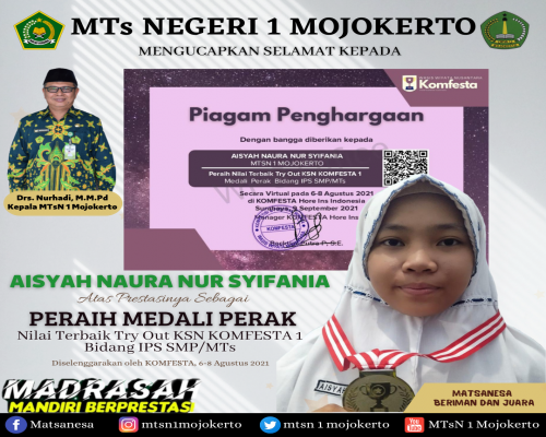 Kab. Mojokerto (MTsN 1) – Rabu (11/06/2025) prestasi gemilang kembali diraih oleh siswi MTsN 1...